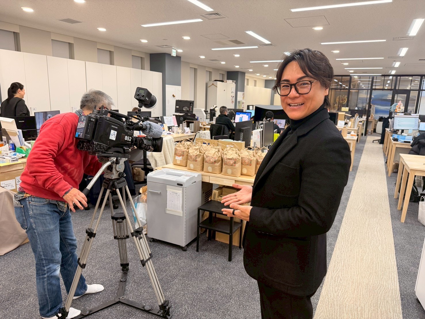 従業員が福利厚生によってお米を食し、社員が消費しきれないお米を回収し