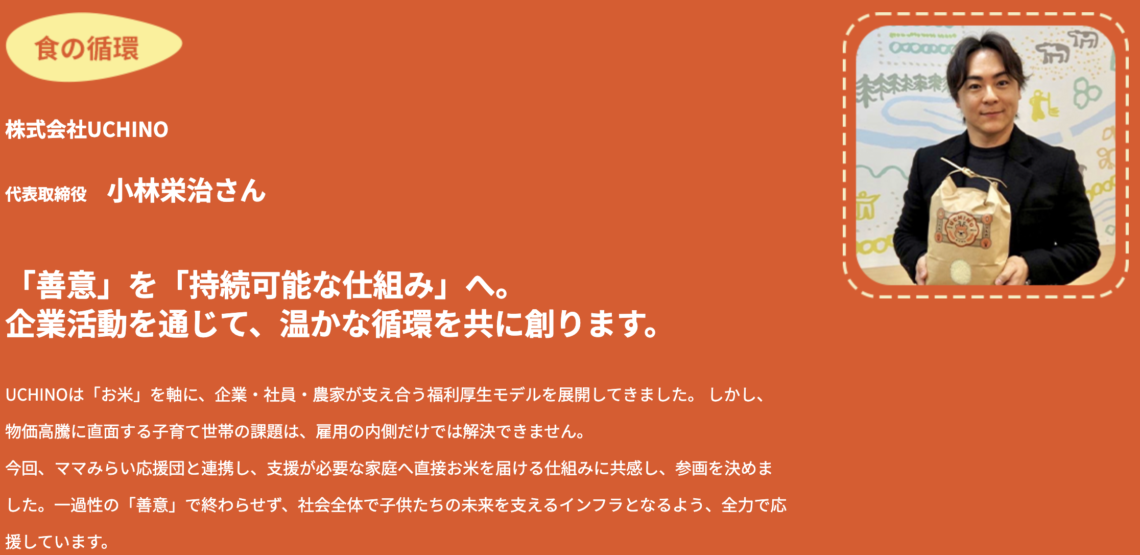 株式会社UCHINOは、企業の福利厚生を活用して日本の米農家を支援しながら、